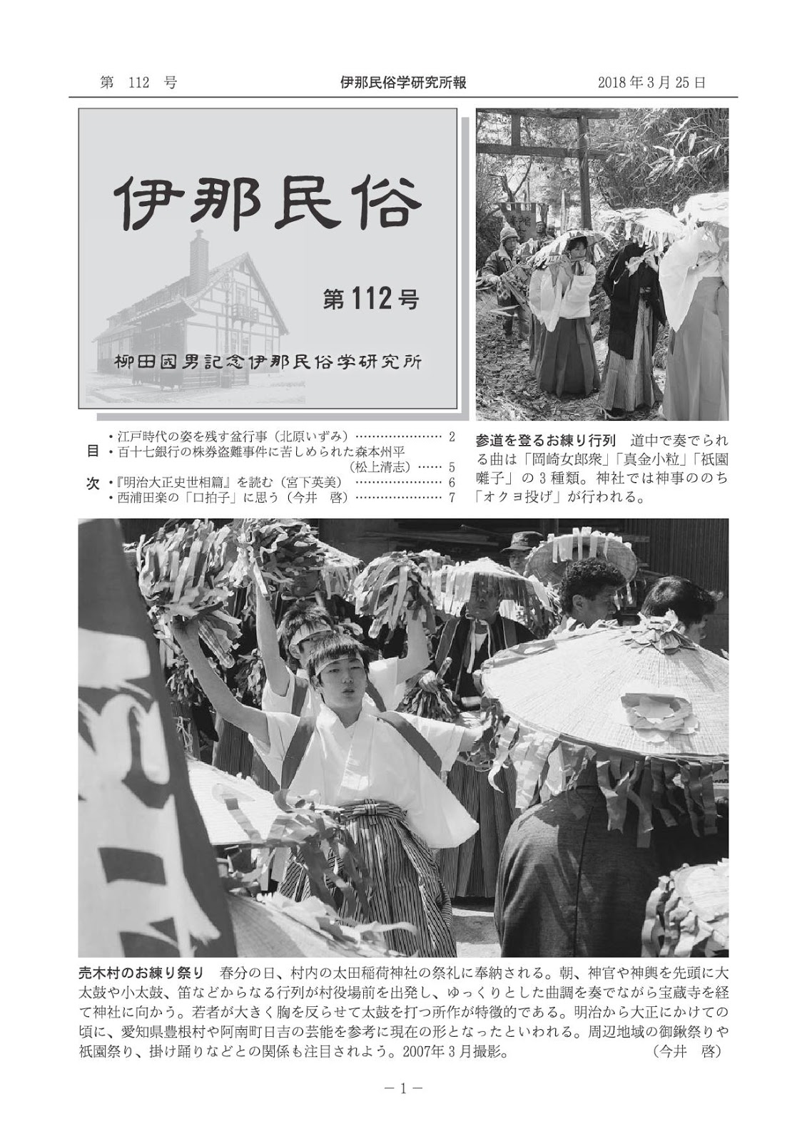 | 1 | 表紙 | 寺尾山神社(下條村陽皐吉岡)の風祭り/ 根之神(下條村陽皐菅野)の風祭り | 今井啓 | |