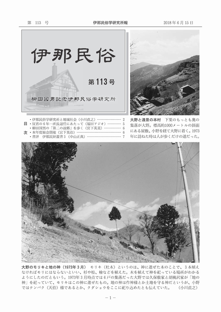 | 1 | 表紙 | 大野のモリキと地の神(1973年3月)/大野と遠景の本村 | 小川直之 | |